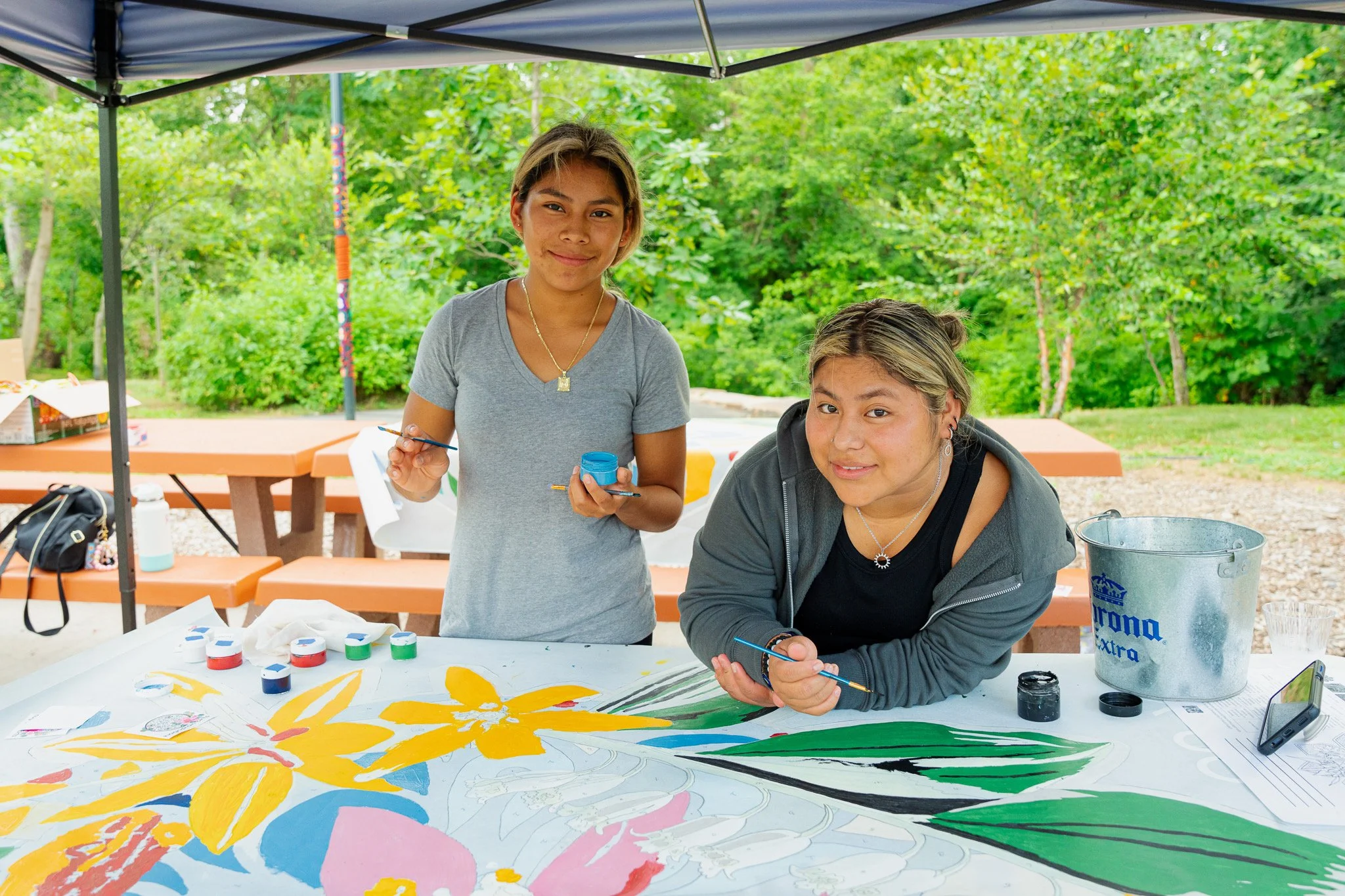 Through a series of workshops, local residents and organizations poured their creativity into painting vibrant banners that celebrate connection and community pride. Now hanging proudly at the Anson B. Nixon Gateway and Cypress Beach Park, these hand-painted banners transform the Kennett Greenway into a living canvas where community stories and expression are on full display.