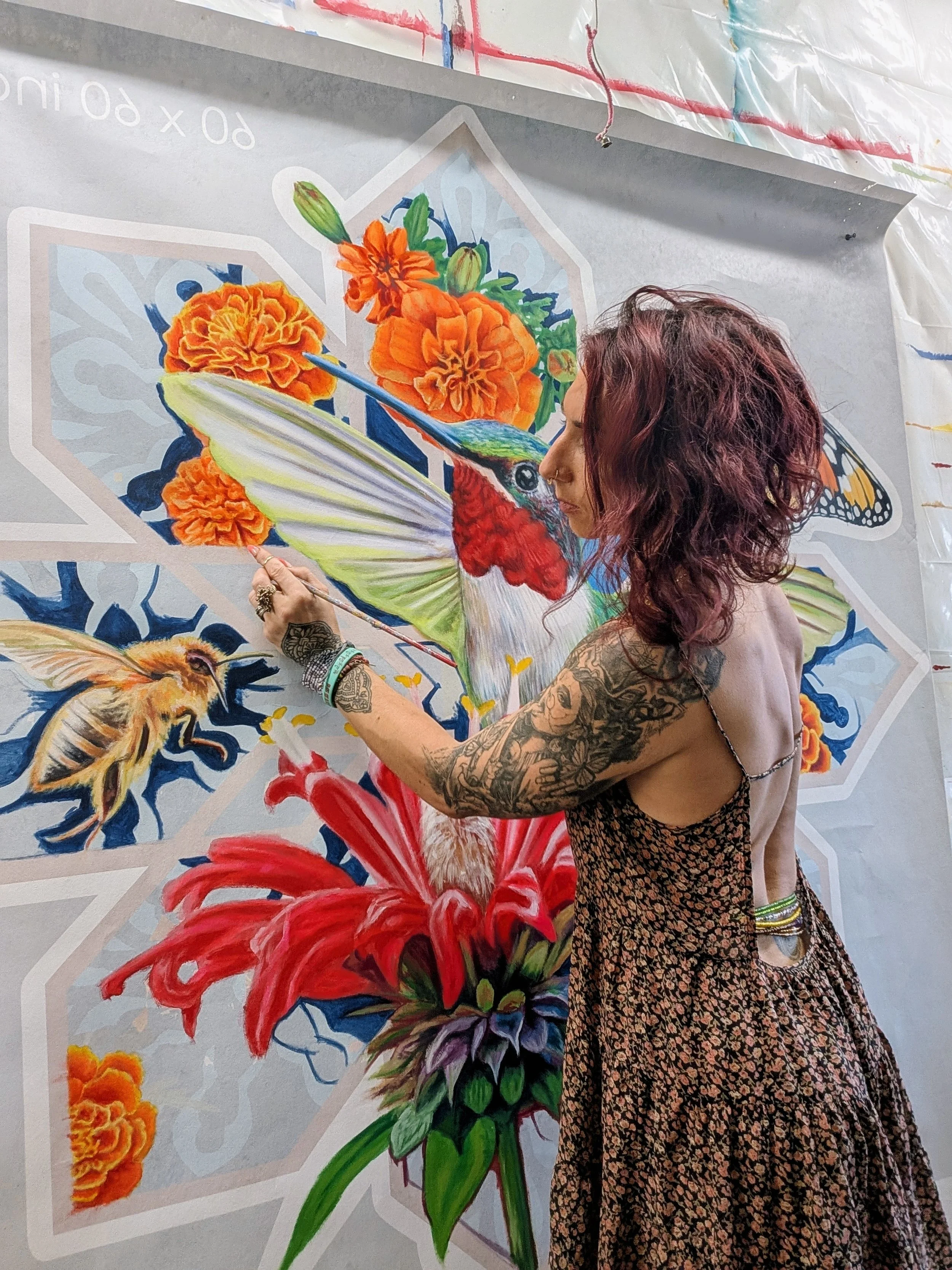 The Wild Medicine Eco Mural 23: Kennett Trails series continues the artistic journey first sparked by Wild Medicine: Eco Mural 20 at Artelo—a collaboration between Hagopian Arts and Square Roots Collective that celebrates the intricate connections between plants, pollinators, and people.